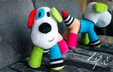 Zip Dog is a fun, colourful pup, Zip loves to have fun, going on adventures and learning along the way.